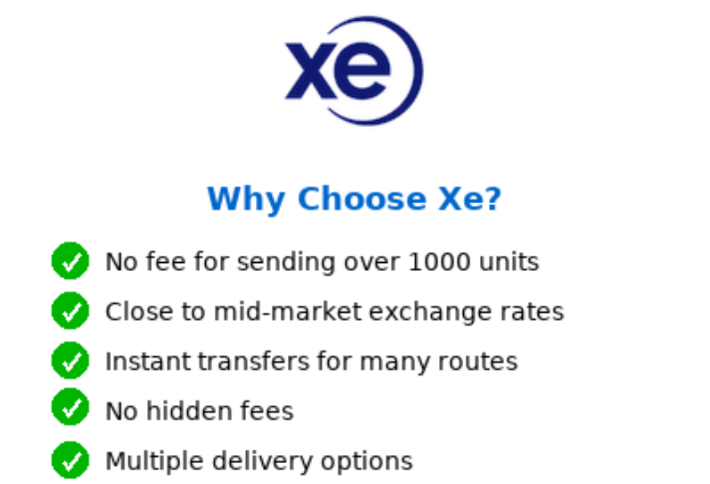 Availability can vary by currency pair, amount, payment method, and compliance checks. Standard Xe terms apply.
